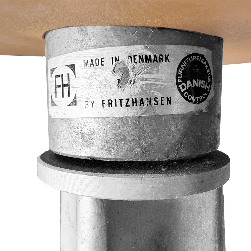 This is an original Swan chair designed by Arne Jacobsen in in natural unfinished light tan color leather. Natural unfinished leather starts out very pale and gradually darkens over time. this chair is in great original condition, and swivels freely. This Swan chair retains it’s original Fritz Hansen label with the Fritz Hansen logo and “Made in Denmark” molded into the underside of the metal base. In 1958, Arne Jacobsen designed the Swan chair for the SAS Royal Hotel in Copenhagen. The swan chair is still in production, but sadly the original design of the chair base has been extensively altered and no longer is formed from a solid cast piece as Jacobsen designed it.